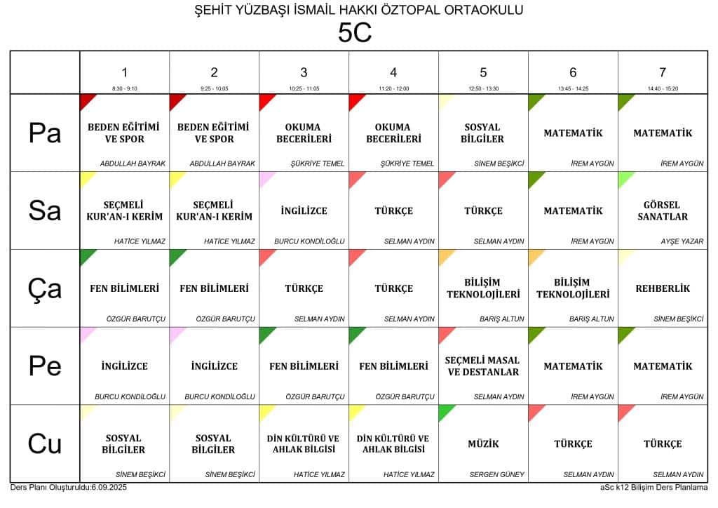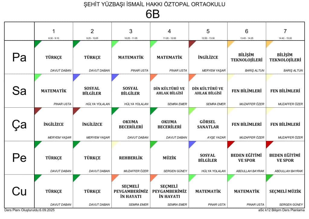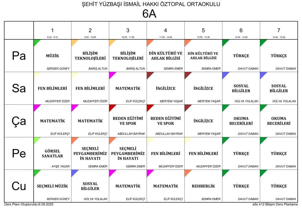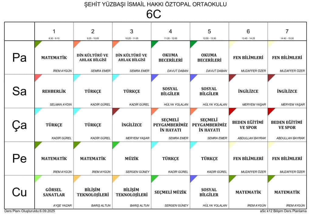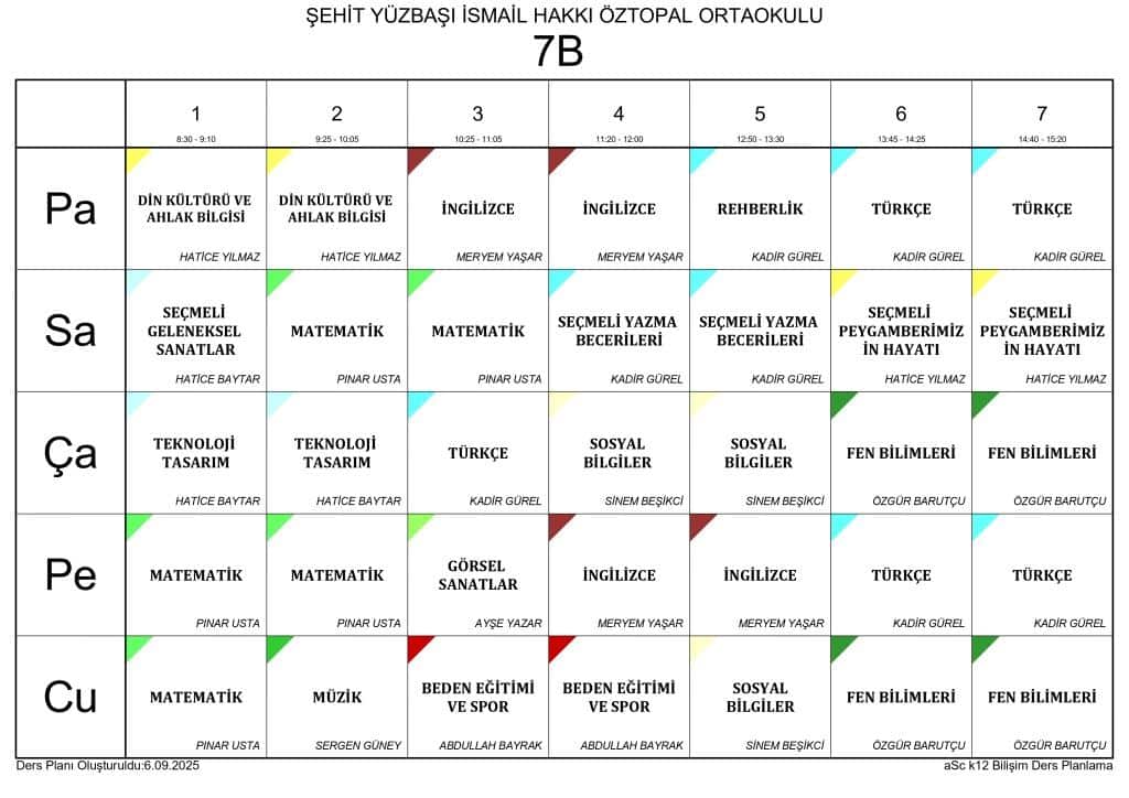 2025 - 2026 EĞİTİM ÖĞRETİM YILI SINIF DERS PROGRAMLARI