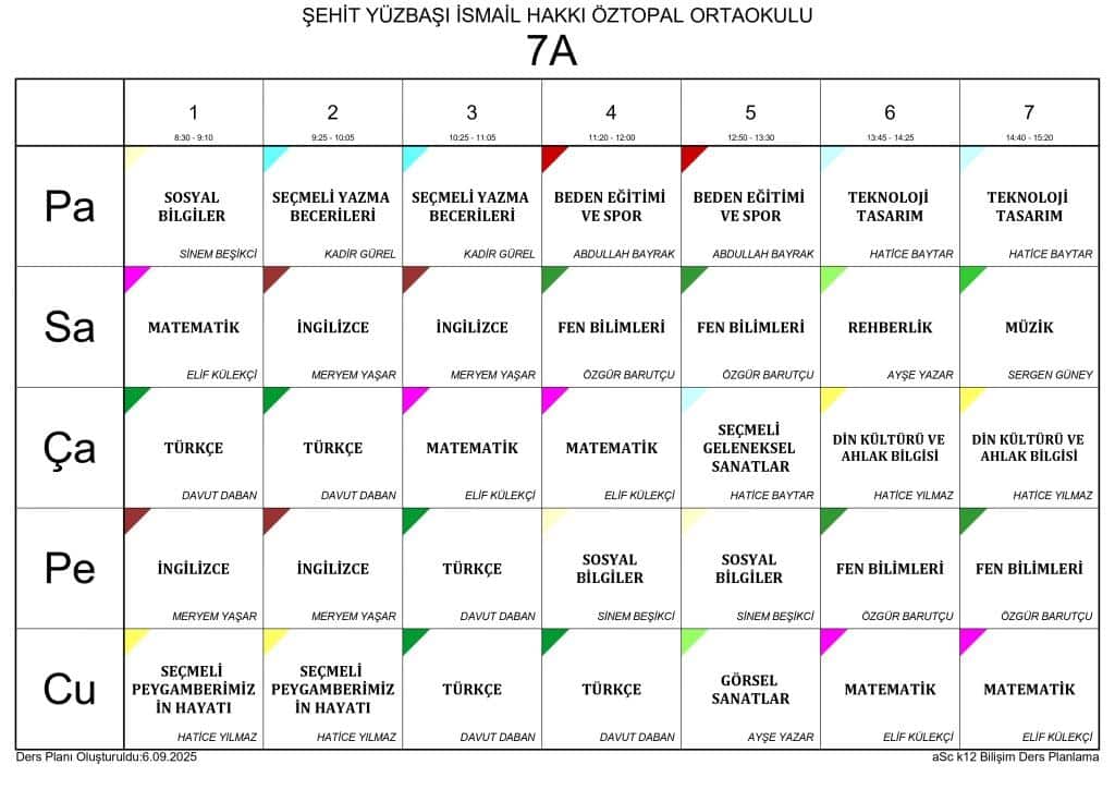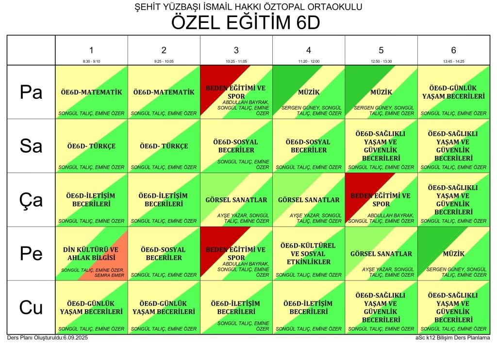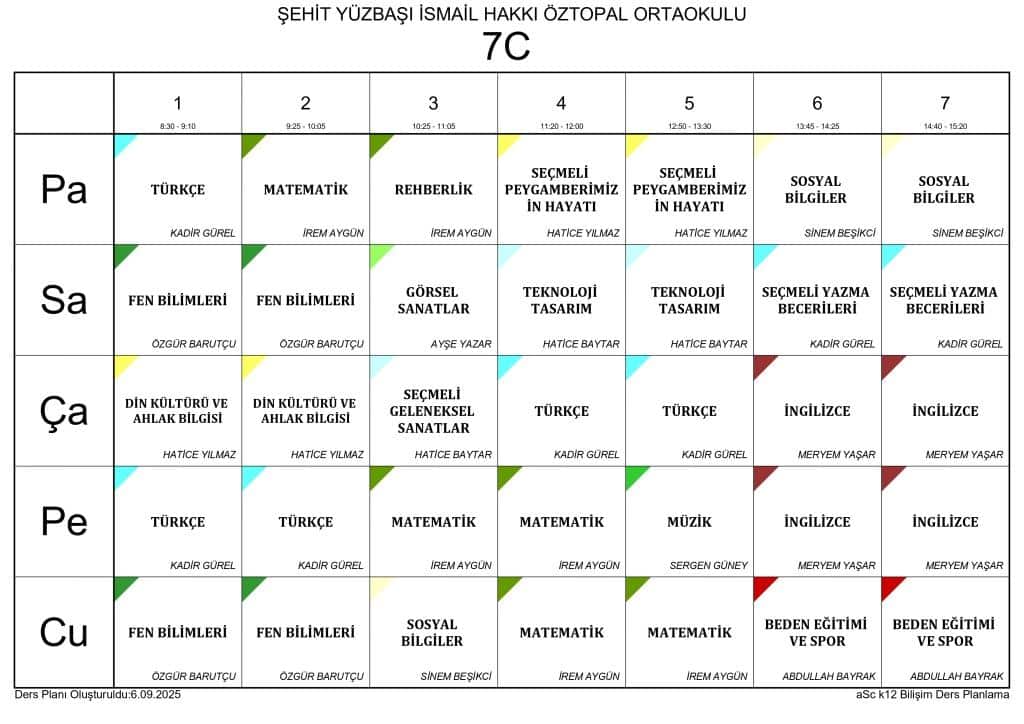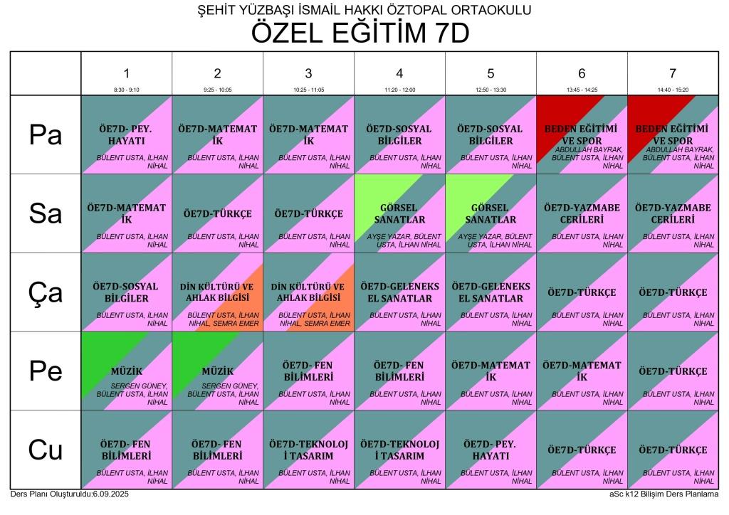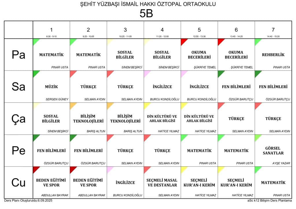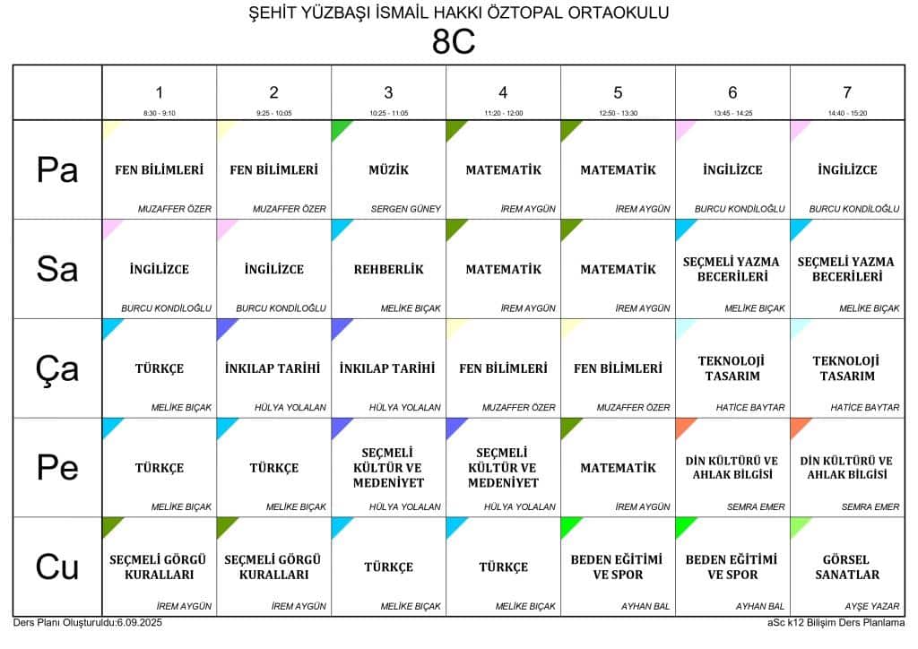 2025 - 2026 EĞİTİM ÖĞRETİM YILI SINIF DERS PROGRAMLARI