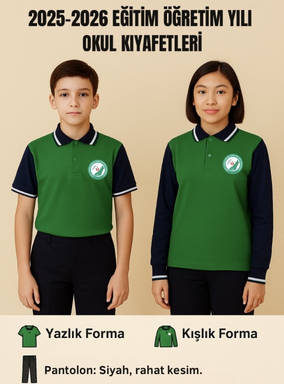 2025-2026 Eğitim ögretim yılında okul kıyafetlerimiz geçen sene ile aynı olacaktır.